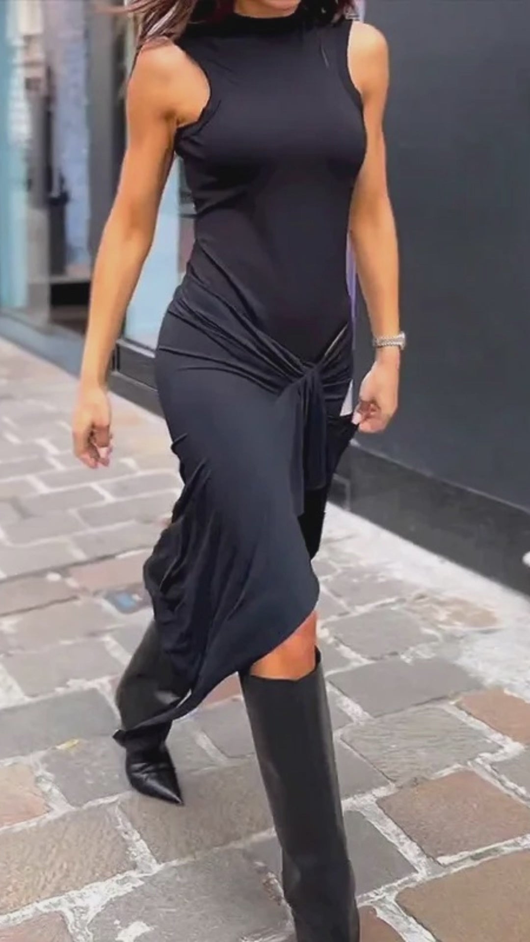 Command the evening with effortless sophistication in our Midnight Elegance - Aria Glow. Crafted from luxurious deep navy satin, features a plunging halter neckline that highlights the shoulders and elongates the silhouette. The bodice is thoughtfully wrapped and cinched at the waist with a soft sash tie, sculpting a flattering hourglass shape.
